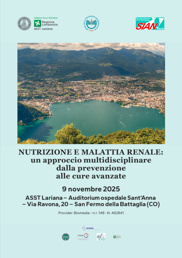 L’Ordine delle Professioni Infermieristiche della Provincia di Como invita a partecipare al corso di aggiornamento “Nutrizione e Malattia Renale, dalla Terapia Conservativa alla Dialisi, fino al Trapianto e alle Cure Palliative”, organizzato a Como in collaborazione con SIAN – Società Infermieri di Area Nefrologica e Regione Lombardia, il giorno 9 Novembre 2025, presso Auditorium Ospedale ASST Lariana – Via Ravona, 20, San Fermo della Battaglia (CO).